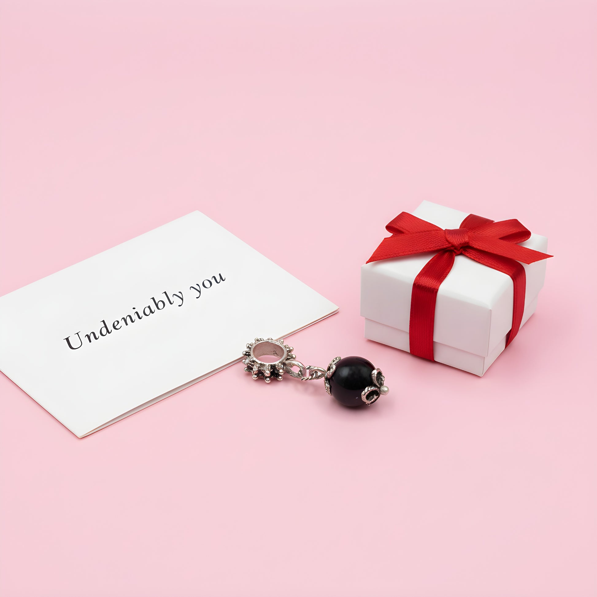 This sophisticated charm is handcrafted in silver filigree and embellished with a natural onyx and obsidian stone, known for their deep, intense tones and elegant luster. The combination of these materials creates a refined balance between the brilliance of silver and the mystery of dark gemstones.